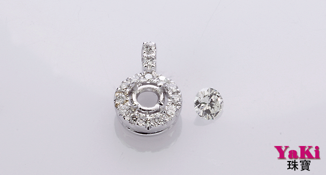 客人白K金鑽墜原本主石是以爪鑲方式鑲崁因不喜歡這樣,要請師傅改台改換主石以包鑲方式來製作。