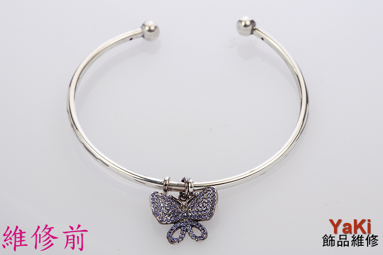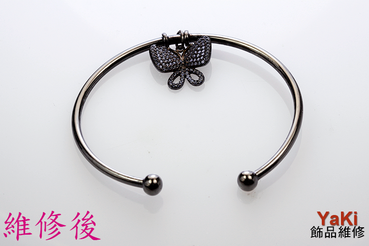 因客人手環配戴過程戒指表面刮傷並電鍍層退色老舊,要請師傅拋光電鍍,就請YAKI師傅幫忙維修。經維修師傅把磨損地方拋平、拋光,再送至電鍍工廠電鍍變成全新"黑色"手環。