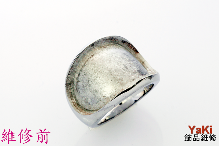 因客人戒指長期配戴過程大面積陶土脫離損壞,要請師傅重新燒烤陶土並補水晶且電鍍,就請YAKI師傅幫忙維修。