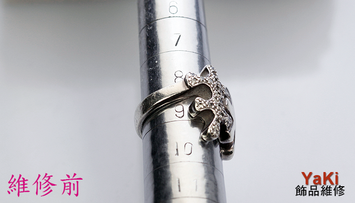 因客人手環長期配戴過程皮繩表面刮傷磨損嚴重,要請師傅重新更換新的皮繩,就請YAKI師傅幫忙維修。