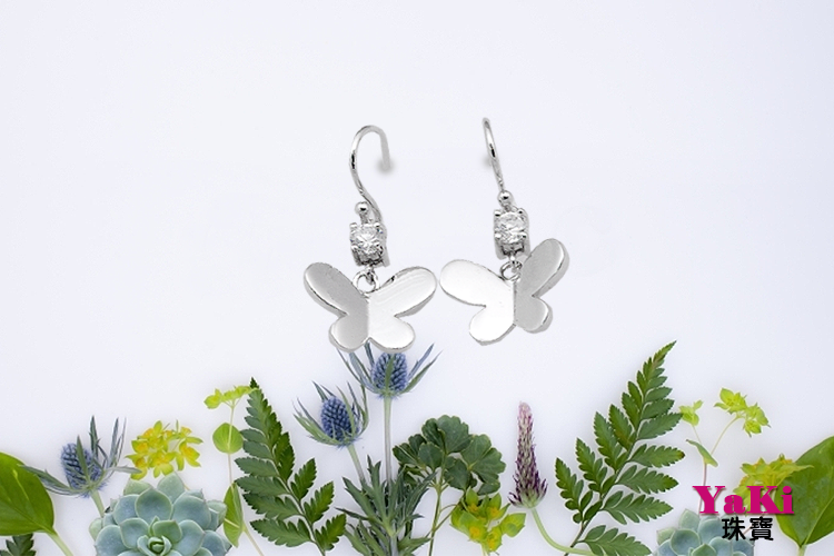 簡約時尚珠寶設計美鑽耳環靈感發想,蝴蝶形垂釣款式質感配戴展現品味和典雅,亮面造型爪鑲風格簡潔,賦予設計珠寶更靈動輕盈的美感。