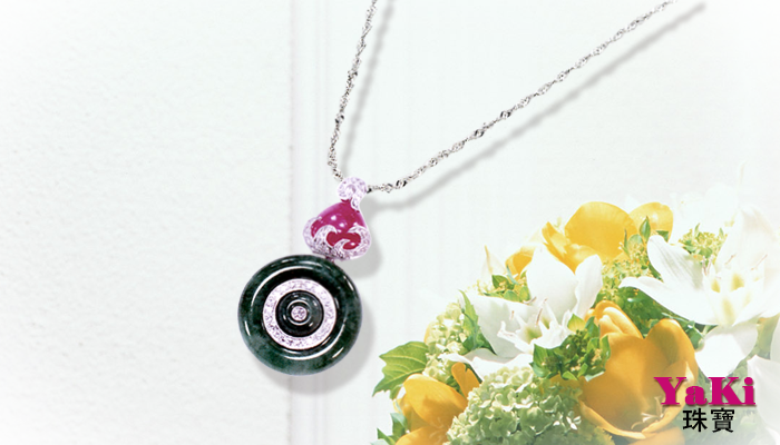 鑽飾的勾勒設計,富音樂性,更添靈動感,落落大方,風華翩翩,圍繞住中心的翡翠,高雅脫俗。